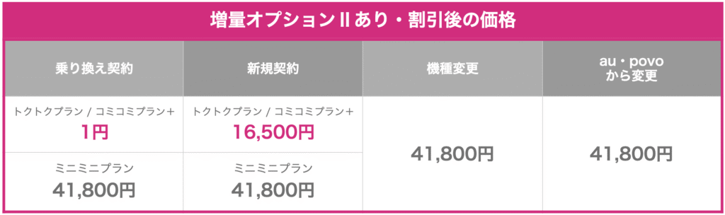 - 機種変更(au/povoから)の場合は41,800円。