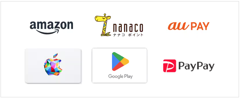 • Amazonギフト券、au PAY、セブンギフトなどに交換可能