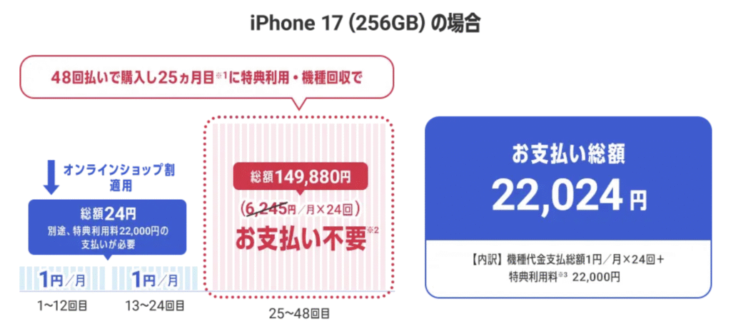 - ソフトバンク:2年後返却前提で実質2万2,024円(月額917円相当)