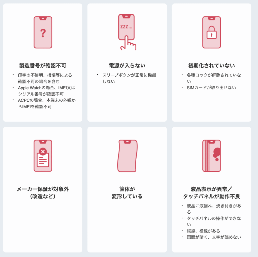 - 返却端末が査定基準を満たさない場合、全額自己負担になる可能性あり