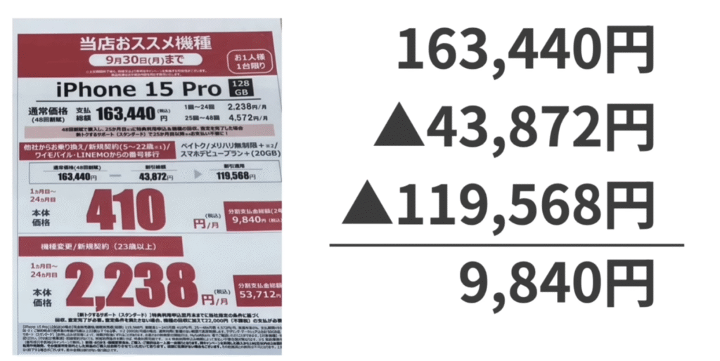 iPhone15Proの場合、ソフトバンクの伝説的な投げ売りキャンペーン