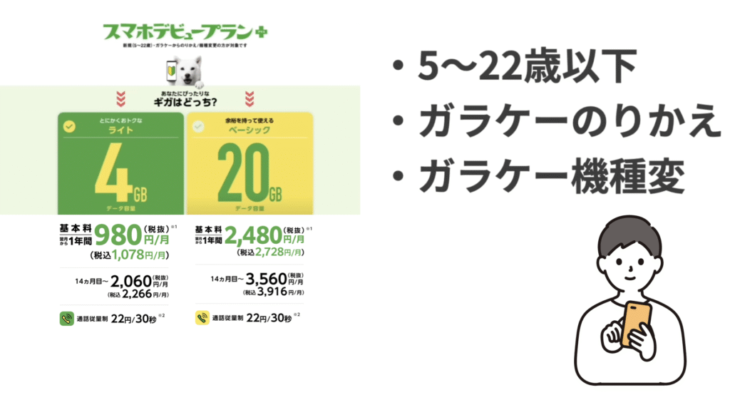 • スマホデビュープランプラスを適用