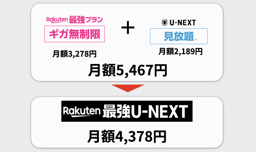 • 従来:最強プラン3,278円+UNEXT2,189円=5,467円
