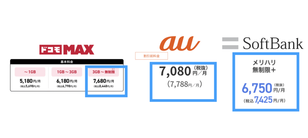 ドコモやau、ソフトバンクと比べると、楽天モバイルのコスパは圧倒的です。大手は月8,000円前後かかりますが、楽天は4,378円で同等以上のサービスを提供します。