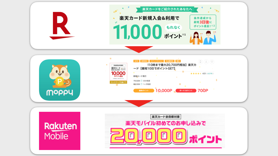 • 楽天カード新規入会・利用:1万1,000円相当(3日で付与)