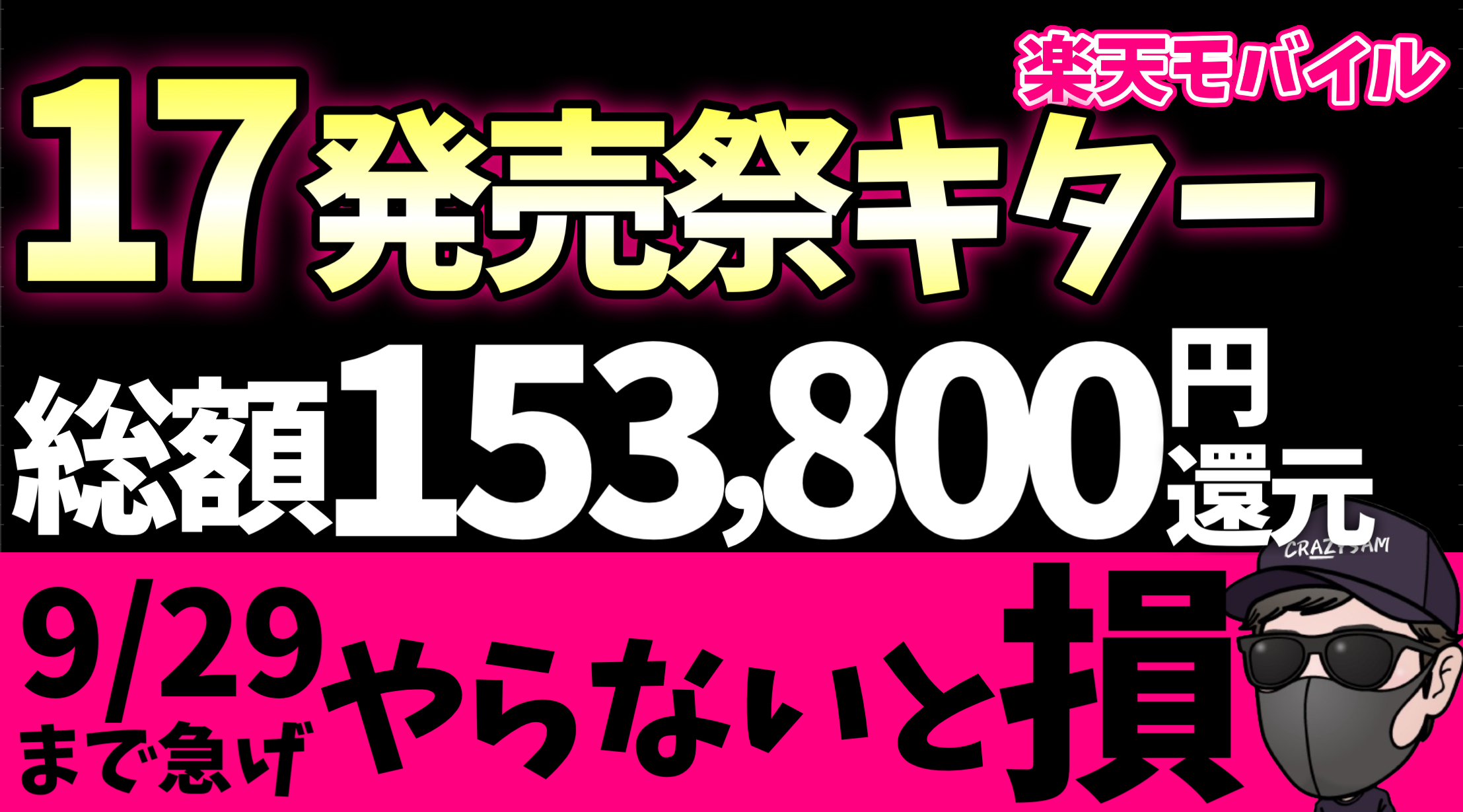 • 楽天モバイル新規契約:2万ポイント付与