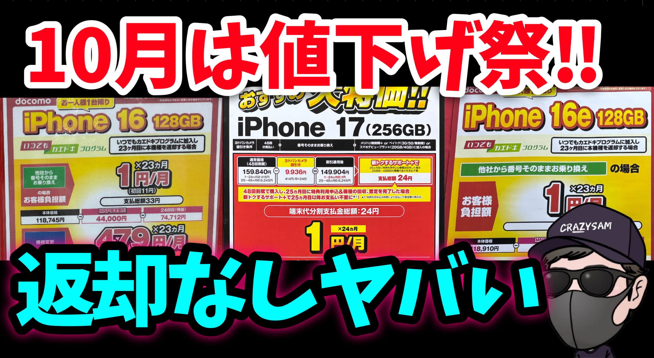 ついに「iPhone17・16」シリーズの価格が動き出しました。10月に入り、各量販店・キャリアのキャンペーンが激化。今回はその中でも特に注目すべき最新値下げ情報を、キャリア別にわかりやすく整理して解説します。