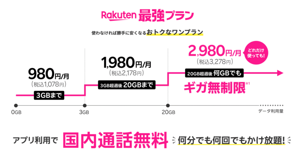 • 通信費:楽天が最安(3GB1,078円)