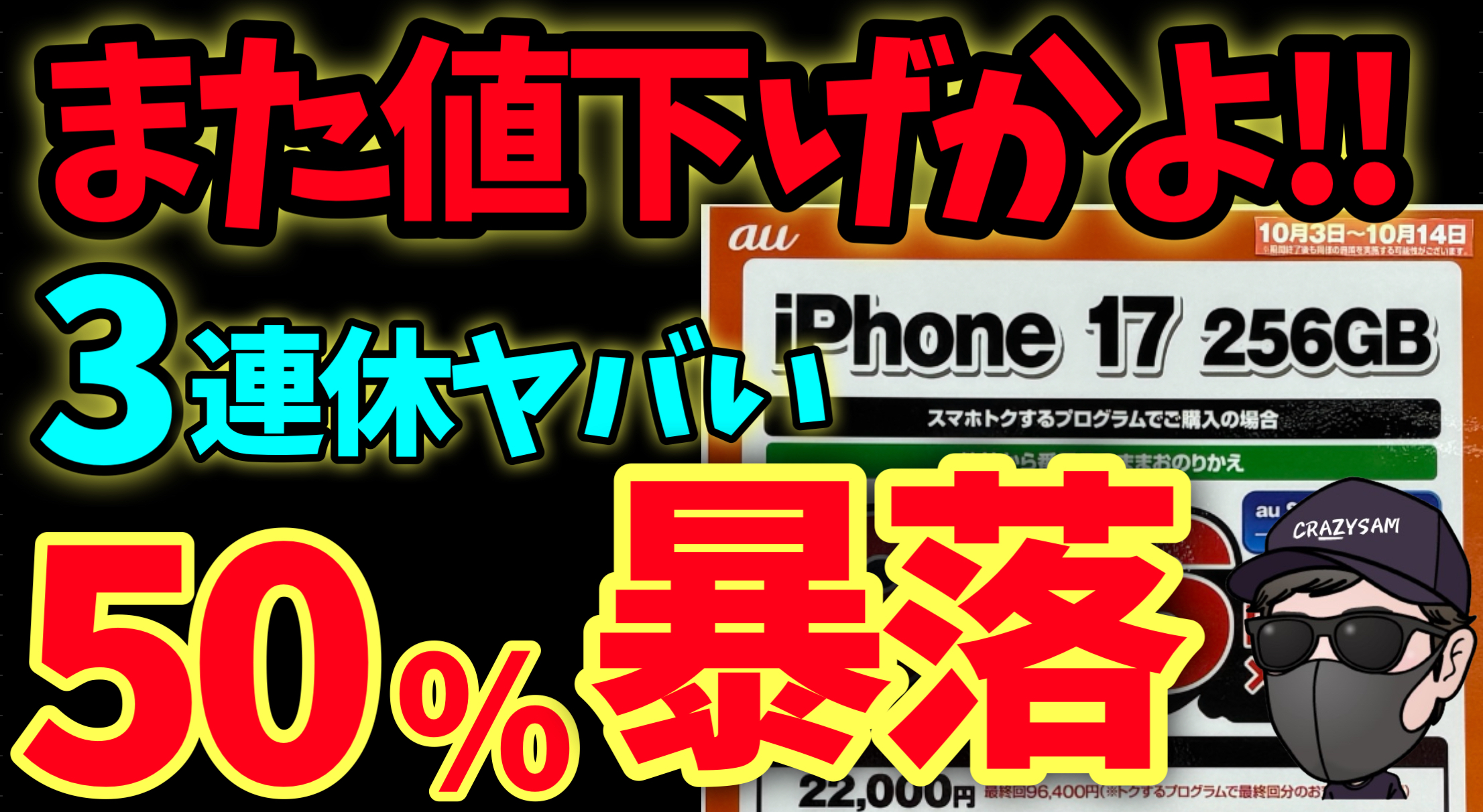 iPhone17の値下げが止まりません。特に10月第2週、au・ソフトバンク・ドコモ・楽天モバイルの各キャリアが一斉に価格を見直し、実質月額500円台という異常事態が発生しています。この記事では、各社の値下げ内容や注意点を比較し、今どのキャリアが最もお得に「iPhone17」を契約できるのかを徹底解説します。