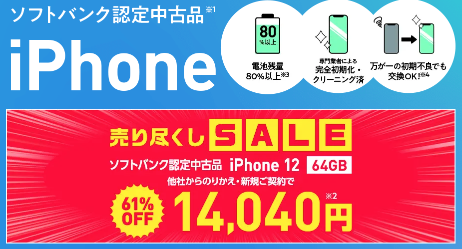 - iPhone 12 64GB:14,040円(61%オフ)
